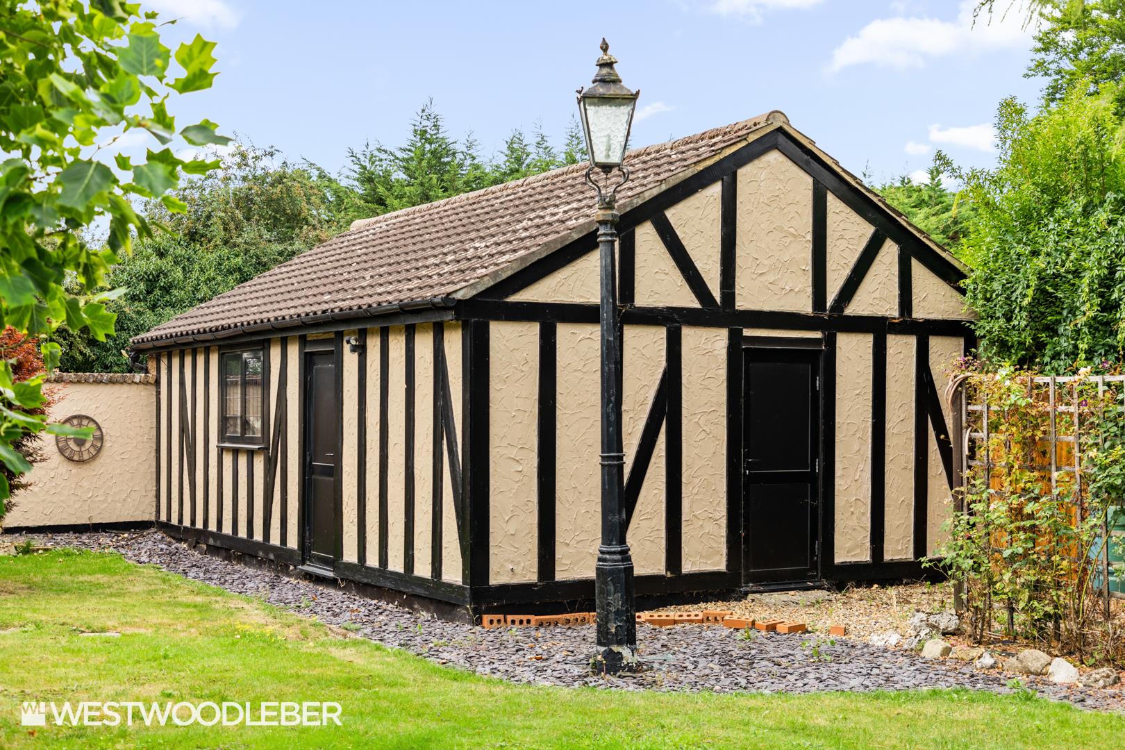 - Large sweeping driveway, double garage, two outbuildings, and a games room.