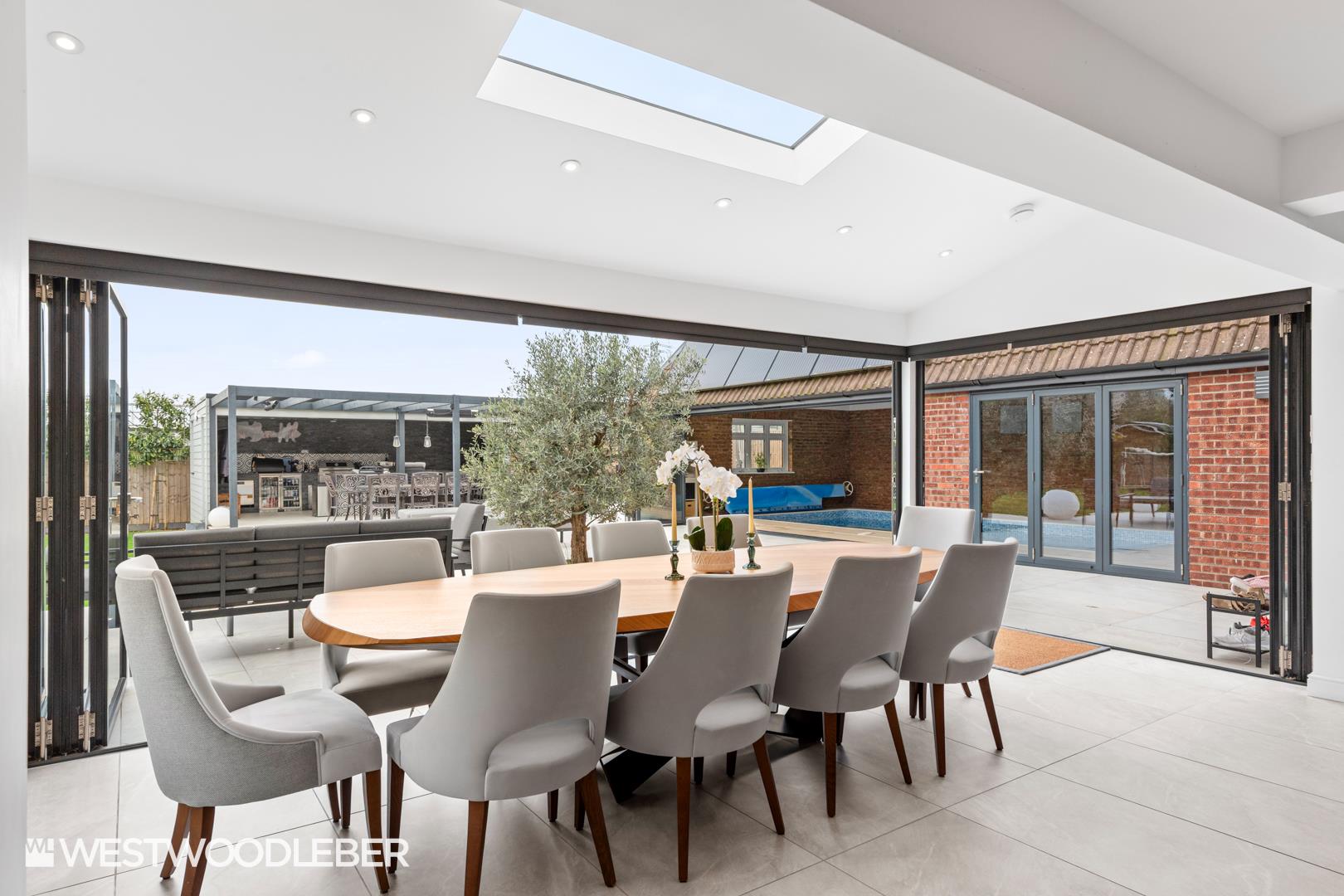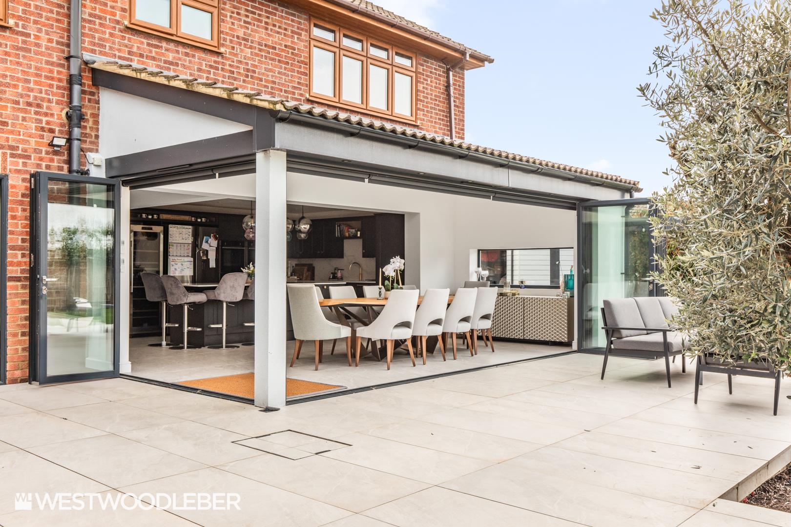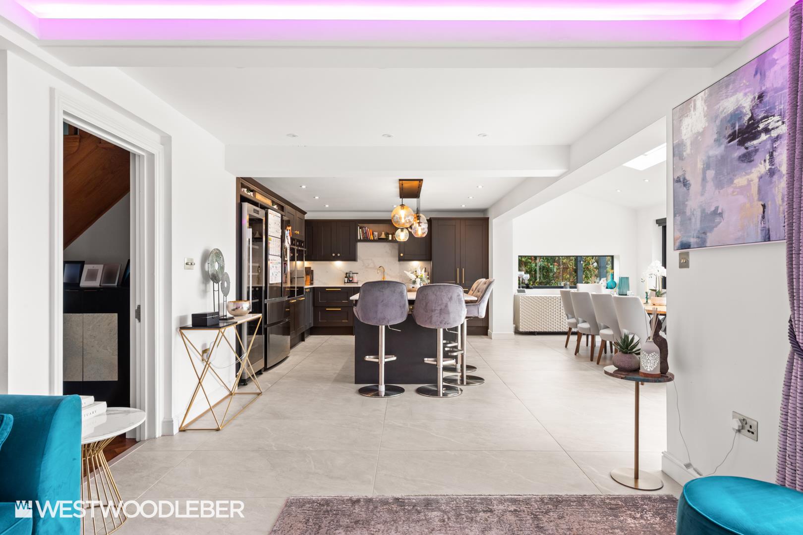 Westwood Leber are delighted to present this outstanding five-bedroom detached residence, set behind electric gates on a generous plot of approximately one-third of an acre. Beautifully renovated, the property offers highly versatile accommodation, seamlessly combining contemporary design with exceptional lifestyle living.A standout feature of this home is the impressive indoor swimming pool complex, designed for year-round use. This leisure space is complemented by a magnificent bespoke kitchen and family area, featuring wrap-around bi-fold doors that open directly onto the beautifully landscaped gardens, creating a perfect flow between indoor and outdoor living. The gardens themselves have been thoughtfully designed with multiple distinct areas for entertaining and relaxation, including a superb outdoor kitchen ideal for al fresco dining.The accommodation further comprises three spacious reception rooms, in addition to the indoor swimming pool complex. Adding to the property’s versatility, the detached garage has been fully redeveloped to include a self-contained living space to the rear, complete with a kitchenette, shower room, and generous living area—ideal for guests, extended family, home working, or potential annexe use.Conveniently located within easy reach of Broxbourne mainline station, providing direct services to London Liverpool Street, this home offers an exceptional lifestyle opportunity, combining luxury living, privacy, and excellent commuter links.