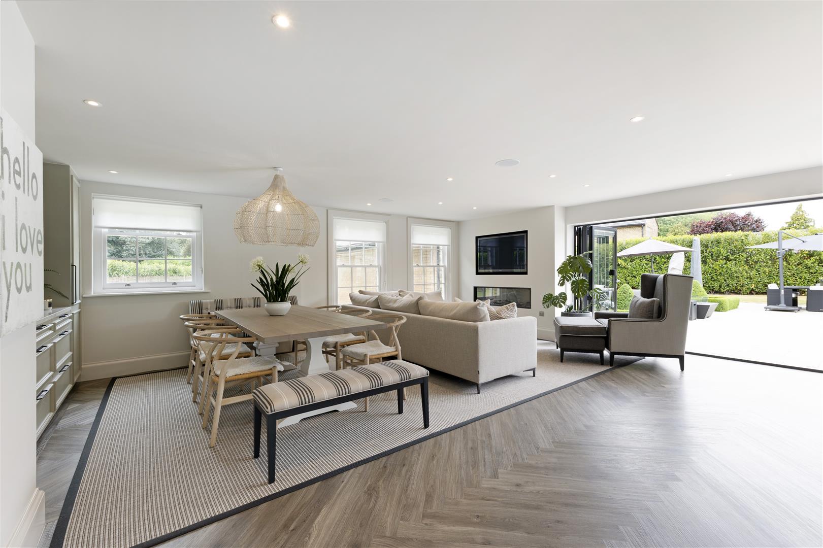 - Stunning kitchen/family room with bi-fold doors opening to the terrace