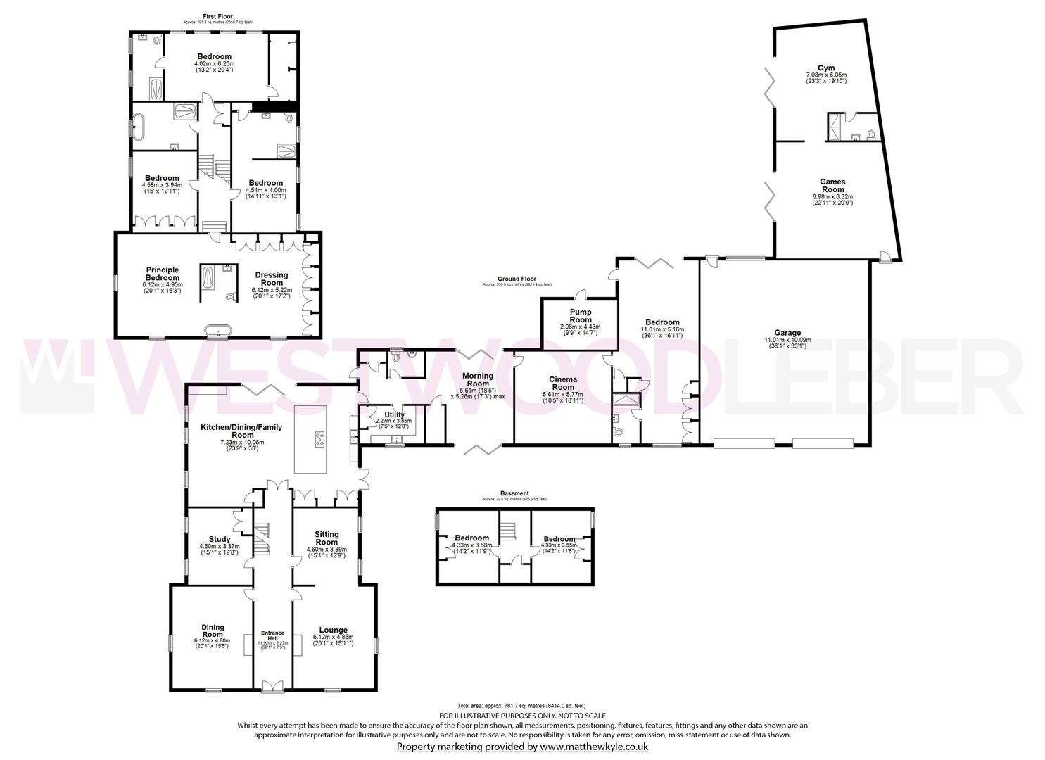 Upon entry, the entrance hallway immediately boasts a wealth of charming features leading to the versatile reception rooms, including dining room, sitting room, lounge and study. As you lead through the hallway, the accommodation steps down to the stunning kitchen/family room with bi-fold doors leading seamlessly onto the terrace and outdoor entertaining areas. The morning room with dual aspect bi-fold doors is a beautiful feature of the ground floor accommodation creating a warm snug room which then leads onto the bespoke cinema room. To the east side of the ground floor, the accommodation, provides a luxurious gym and games room/bar complete with its own bathroom which has been designed to be transformed into a self contained annexe with its own entrance should you wish too. The formal living space on the ground floor is completed with a utility room, cloakroom and further bedroom with en-suite.